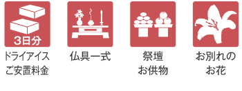 花祭壇を飾り、葬儀告別式を行う、ご家族だけで行いたい方に最適なプランです。ご親戚が来られる場合でも、ご対応できますのでご安心頂けます。