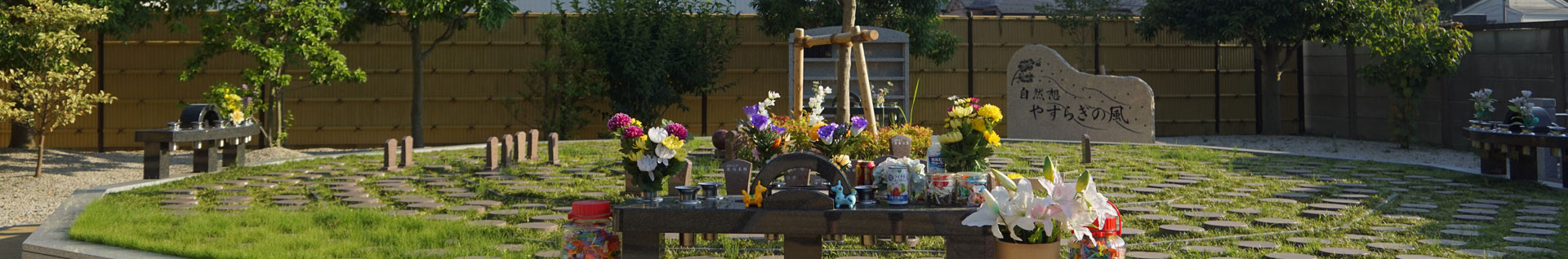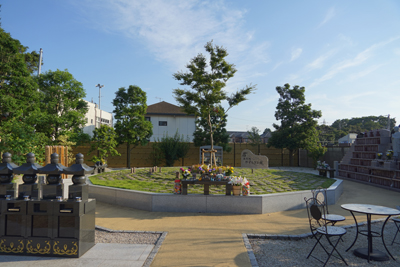 ペットと共に納骨可能な墓所(右写真)も併設する一日中陽光あふれる墓苑です。